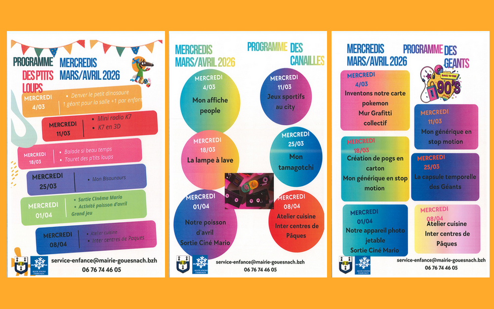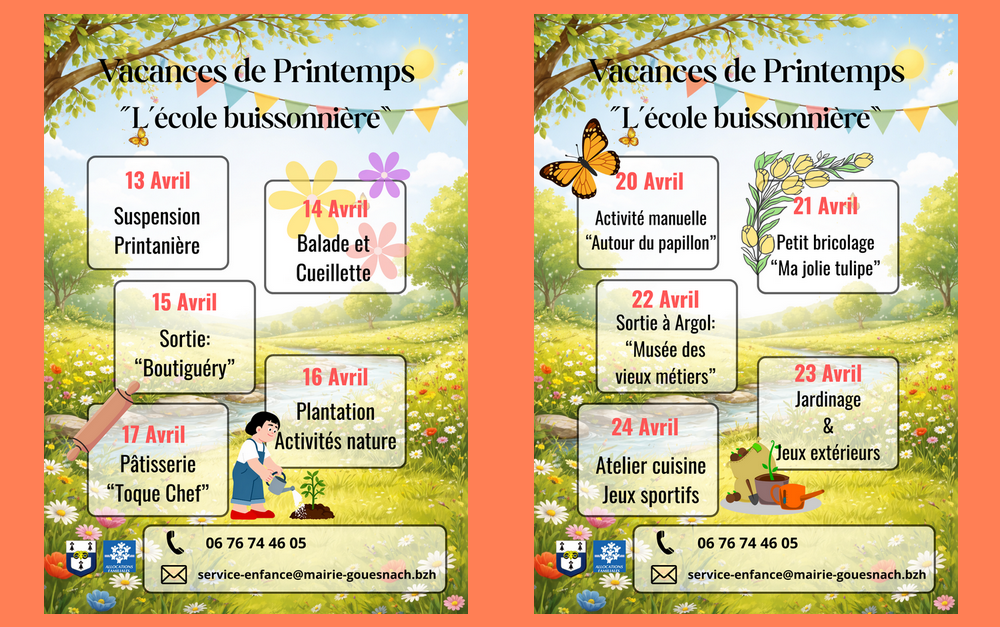 service-enfance@mairie-gouesnach.bzh et 06.76.74.46.05.