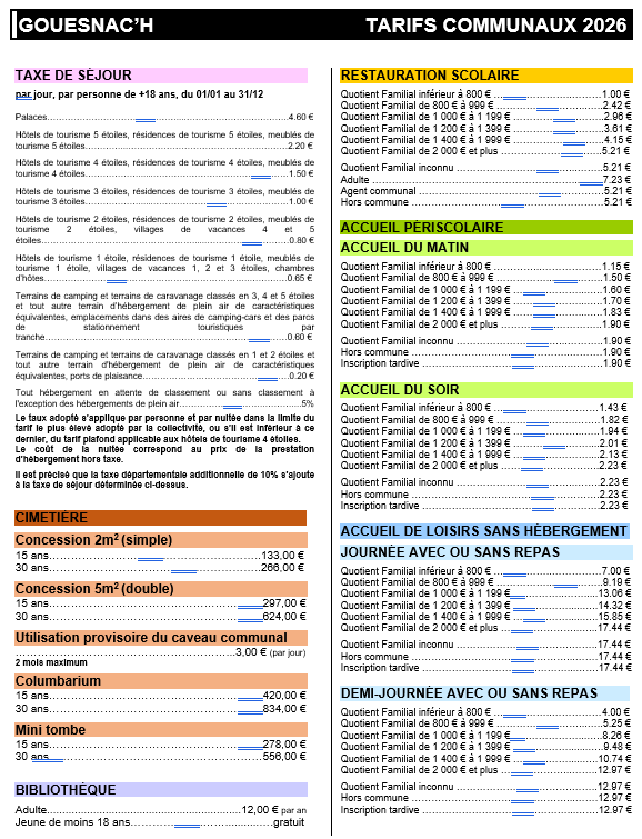 Téléchargez ici l’ensemble des Tarifs Municipaux 2026